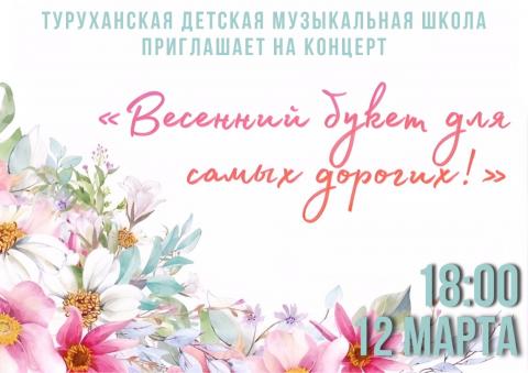 Туруханская детская музыкальная школа 12 марта в 18:00 приглашает на праздничный концерт «Весенний букет для самых дорогих», посвящённый Международному женскому дню.