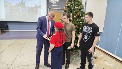 Заместитель Главы Туруханского района по общественно – политической работе Владимир Сергеенко вручил юным бойцам отряда юнармейские книжки.