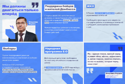 Сохранение исторической памяти, гуманитарная миссия, помощь фронту, жителям новых и приграничных регионов, а также поддержка участников специальной военной операции, которые хотят начать свою политическую карьеру — об этом и не только рассказал Владимир Якушев.