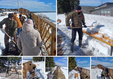 Вооружившись лопатами, граблями и метлами, ребята и педагоги с энтузиазмом и старанием приводили в порядок памятное место: расчищали снег и лёд, убирали мусор, подметали дорожки. Особенно приятно было видеть, как мужчины посёлка подавали личный пример – их гражданская активность вдохновляла школьников на работу.