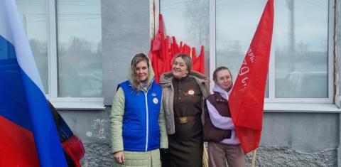 Активисты местного отделения партии «Единая Россия» вручали участникам памятные значки – символы 80-летия Великой Победы.