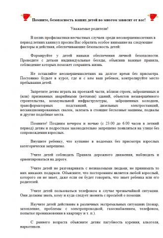 В связи с наступлением летних каникул и увеличением активности детей на открытом воздухе, мы обращаем ваше внимание на необходимость принятия мер предосторожности для предотвращения несчастных случаев среди несовершеннолетних. Вот несколько важных рекомендаций: