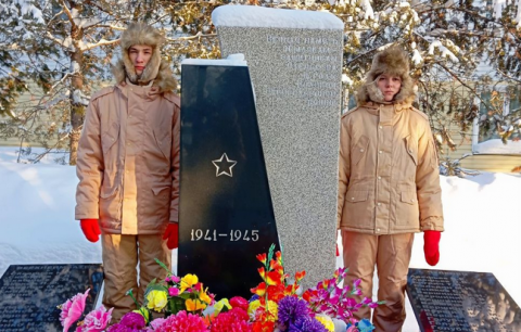 Участники военно-патриотического движения «Юнармия» несли вахту памяти. После окончания церемонии местные жители и юнармейцы возложили цветы к мемориалу.