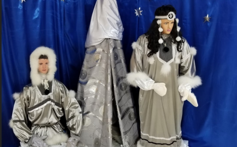 В фойе школьников встречали Дед Мороз с благородными оленями и Снегурочка на санях. Слева от входа раскинулась уютная Юрта с коренными жителями Севера, пойманной рыбой и верной хаски. Эта потрясающая экспозиция была создана учителем технологии Еленой Кузнецовой и учителем изобразительного искусства Татьяной Андреевой.