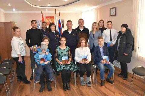 На память ребята получили обложку для паспорта от Молодежного центра Туруханского района и современную редакцию Конституции Российской Федерации.
