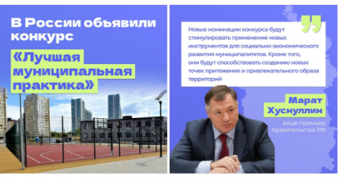Как отметил вице-премьер Марат Хуснуллин, конкурс является одним из эффективных инструментов по поддержке лучших муниципальных практик, направленных на повышение качества жизни граждан.