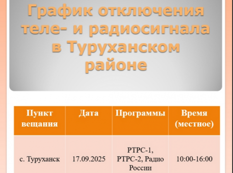 По данным специалистов филиала РТРС «Красноярский КРТПЦ» профилактика запланирована 17 сентября, в период с 10:00 до 16:00 часов местного времени. В этот промежуток времени возможны кратковременные остановки трансляции 20 цифровых эфирных телеканалов, а также Радио России.