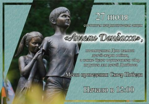 В Туруханске пройдет акция, посвященная Дню памяти детей – жертв войны 27 июля в 12:00 в Сквере Победы пройдет акция памяти «Ангелы Донбасса», а также будет осуществлен сбор игрушек для детей Донбасса.