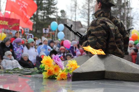 С самого утра курсанты военно-патриотического клуба «Витязь» несли «Вахту памяти» у вечного огня.