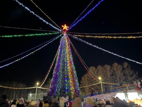 В завершении праздника Дедушка Мороз зажёг огни на новогодней красавице.