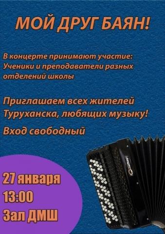 В Туруханской детской музыкальной школе пройдет музыкальная гостиная «Мой друг баян»