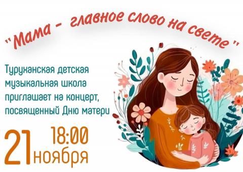 В Туруханской детской музыкальной школе состоится концерт «Мама - главное слово на свете» Праздничное мероприятие, посвященное Дню матери, пройдет 21 ноября в 18.00 в концертном зале школы.
