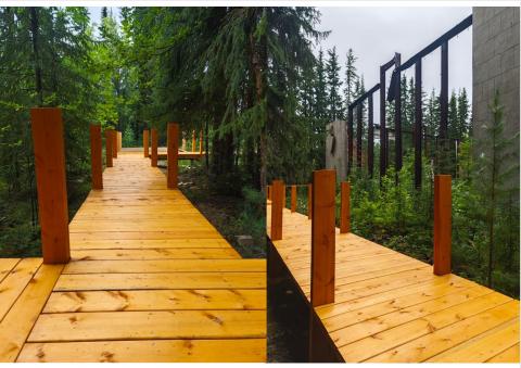 На сегодняшний день рекреационно - туристический объект находится в высокой степени готовности, работы по установке ходового деревянного настила завершены, работы по монтажу смотровых (лекционных) площадок завершены, установлен постамент из металлоконструкций для нового памятника. Кроме того, уже ведутся работы по монтажу ограждения ходового настила с двух сторон. Протяженность настила с лестничными переходами составляет 153 метра.