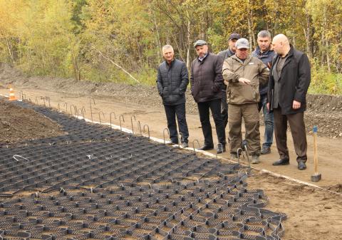Михаил Жадан доложил, что в настоящее время приступили к работам по восстановлению профиля гравийной дороги. Для повышения долговечности и качества дорожного покрытия в сложных климатических условиях, в этом году при укладке впервые начали использование практичных универсальных материалов – геотекстиля и георешетки, с заполнением гравийно – песчаной смесью. Современные геосентетики должны повысить защиту, что позволит укрепить дорожное покрытие и увеличить срок его службы.