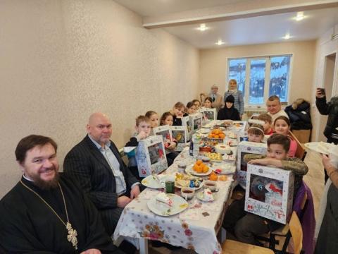 7 января Олег Шереметьев поздравил ребят, Игумена Софрония и работников воскресной школы со светлым праздником, а также вручил детям подарки.