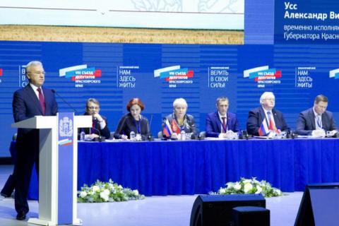 С докладом перед делегатами съезда выступил временно исполняющий обязанности Губернатора края Александр Викторович Усс. В своем выступлении он обозначил наиболее важные направления развития экономики и социальной сферы региона, которые сегодня требуют особого внимания властей.
