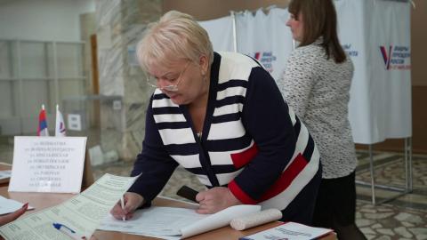 Депутат Законодательного собрания Красноярского края Людмила Магомедова проголосовала на выборах Президента РФ на избирательном участке в Туруханске