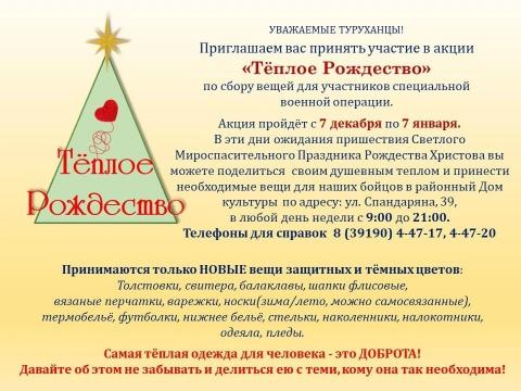 Вещи необходимо приносить в районный Дом культуры по адресу: с. Туруханск, ул. Спандаряна, 39 в любой день недели с 9:00 до 21:00.Подробности в афише.