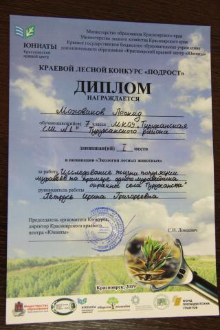 Также Грамотой награжден Хабаров Кирилл за работу «Некоторые экологические особенности произрастания грибов трутовиков в лесах севера Туруханского района Красноярского край».