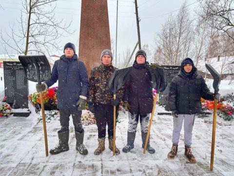 Ребята вышли на уборку мемориала, доказывая делом, что подрастающее поколение чтит память и подвиг своих дедов.