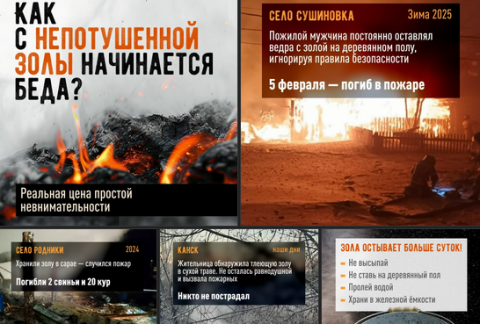 К сожалению, подобные случаи нередко заканчиваются трагедией. Зимой в селе Сушиновка из-за золы, оставленной на деревянной веранде, погиб мужчина, огонь уничтожил два дома. Также зафиксированы случаи пожаров в Рыбинском, Шарыповском и других округах края.