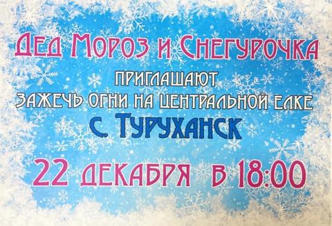 Приглашаем жителей и гостей Туруханска на открытие центральной елки Дед Мороз и Снегурочка зажгут огни на новогодней красавице 22 декабря в 18.00.