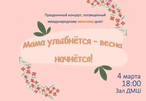 Туруханская детская музыкальная школа приглашает на праздничный концерт, посвященный международному женскому дню Мероприятие «Мама улыбнется - весна начнется » состоится 4 марта в 18:00.
