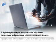 10.11.2022 г. В нашем регионе продолжается программа поддержки бизнеса в рамках федерального проекта «Цифровые технологии» нацпроекта «Цифровая экономика РФ». В 2022 году 3524 предпринимателя из Красноярского края приобрели лицензии на отечественное ПО со скидкой 50%. Сейчас малому и среднему бизнесу за полцены доступны 140 программных продуктов. Это системы для организации документооборота, сервисы по работе с клиентами, решения для торговли, логистики, системного администрирования и др. |