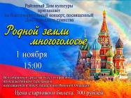 30.10.2025 г. В мероприятии примут участие коллективы и солисты районного Дома культуры, учащиеся и преподаватели Туруханской детской музыкальной школы. Концерт состоится 1 ноября. Цена стартового благотворительного билета - 300 рублей. Все собранные средства будут отправлены нашим землякам - участникам специальной военной операции. |