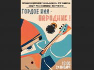 21.01.2026 г. Дорогие жители и гости Туруханска! Детская музыкальная школа 24 января в 13:00 приглашает на концерт русских народных инструментов. Окунитесь в мир народной музыки, которая способна передать всю широту русской души. Приходите сами, зовите друзей и родных! Это прекрасный повод провести январский день в теплой, душевной атмосфере, наслаждаясь талантом музыкантов. Вход свободный. |