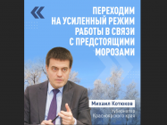 14.01.2026 г. В морозы все службы должны настроиться на оперативное реагирование. Губернатор Красноярского края Михаил Котюков поручил всем ответственным ведомствам и муниципалитетам в ближайшие дни быть готовыми к резкому понижению температур: - Ежедневно проверять наличие топлива в котельных. - Обеспечить быструю реакцию ремонтных бригад в случае аварий. - Проверить готовность резервных источников электроэнергии. - На особом контроле держать работу общественного транспорта и дорожных служб. - На трассах организовать пункты обогрева. |