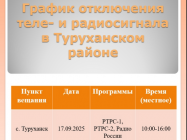 16.09.2025 г. По данным специалистов филиала РТРС «Красноярский КРТПЦ» профилактика запланирована 17 сентября, в период с 10:00 до 16:00 часов местного времени. В этот промежуток времени возможны кратковременные остановки трансляции 20 цифровых эфирных телеканалов, а также Радио России. |