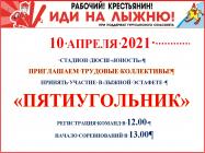 02.04.2021 г. Отдел физической культуры и спорта администрации Туруханского района при поддержке Туруханского сельсовета проводит традиционный "Пятиугольник" для трудовых коллективов. Лыжная эстафета состоится 10 апреля на стадионе детско-юношеской спортивной школы "Юность". Регистрация команд в 12.00, начало соревнований в 13.00. Приглашаем для участия всех желающих! |