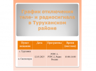 10.03.2025 г. По данным специалистов филиала РТРС «Красноярский КРТПЦ» профилактика запланирована 12 марта, в период с 10:00 до 16:00 часов местного времени. В этот промежуток времени возможны кратковременные остановки трансляции 20 цифровых эфирных телеканалов, а также Радио России. Подробный график проведения профилактических работ размещен на сайте смотрицифру.рф в разделе «Временные отключения телерадиоканалов» и в Кабинете телезрителя, а также в мобильном приложении «Телегид», во вкладке «Вещание». |